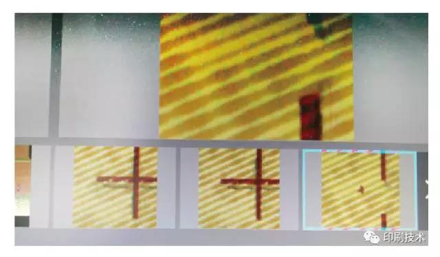 制作這些標(biāo)記,主要是為了方便后工序的檢品機(jī)識別印刷關(guān)鍵色與燙印、凹凸、模切的套印偏差,檢品機(jī)識別套印偏差時(shí)的效果圖如圖6所示。
