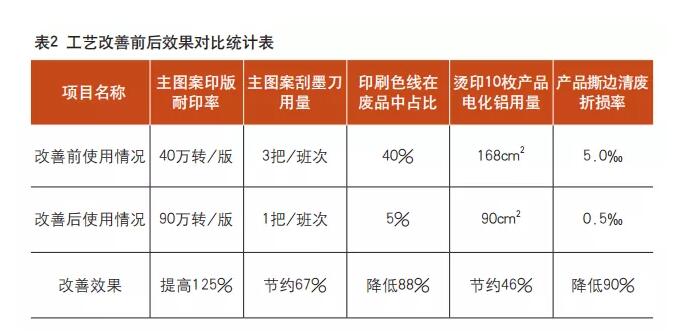 通過對比表2的數(shù)據(jù)可以看出,工藝改善在煙包印刷降本增效中的作用較大,效果明顯。工藝改善無處不在,我們在以后的生產(chǎn)中需要更加注重細節(jié),學會善于觀察,深挖降耗潛能,積累技術經(jīng)驗,加大工藝改善力度,不斷提高發(fā)現(xiàn)問題和解決問題的能力,為降低生產(chǎn)成本、提高生產(chǎn)效率、增強企業(yè)盈利能力找到新的方法,提供新的思路。