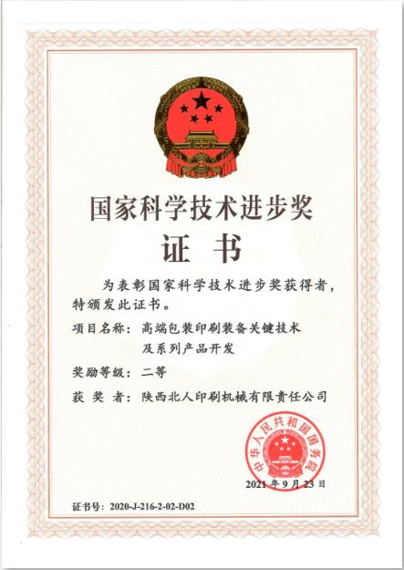 北人智能公司黨委副書記、總經(jīng)理李彥鋒,總工程師薛志成作為主要完成人參與完成的“高端包裝印刷裝備關(guān)鍵技術(shù)及系列產(chǎn)品開發(fā)”項(xiàng)目,獲國家科學(xué)技術(shù)進(jìn)步獎(jiǎng)二等獎(jiǎng)!