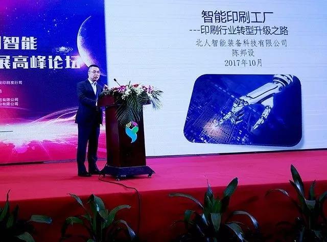 2017年10月18日,2017江蘇印刷業(yè)創(chuàng)新發(fā)展博覽會(huì)和印刷業(yè)創(chuàng)新發(fā)展高峰論壇在蘇州國(guó)際博覽中心舉行,北人智能裝備科技有限公司董事長(zhǎng)陳邦設(shè)作為特邀嘉賓,在本次論壇上發(fā)表了《智能印刷工廠---印企轉(zhuǎn)型升級(jí)路》的主題演講。