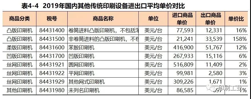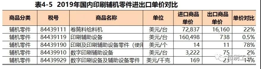 印刷輔機設備進口50臺(平均單價16.05萬美元)、出口4.85萬臺(平均單價738美元),進出口單價比0.5%;
